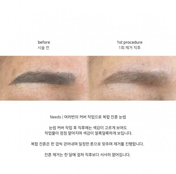 *여러번 한 문신과 산화철 성분이 많이 포함된 색소와 반영구시술자의 터치방법에 따라 제거 횟수 추가 하실 수 있습니다.
