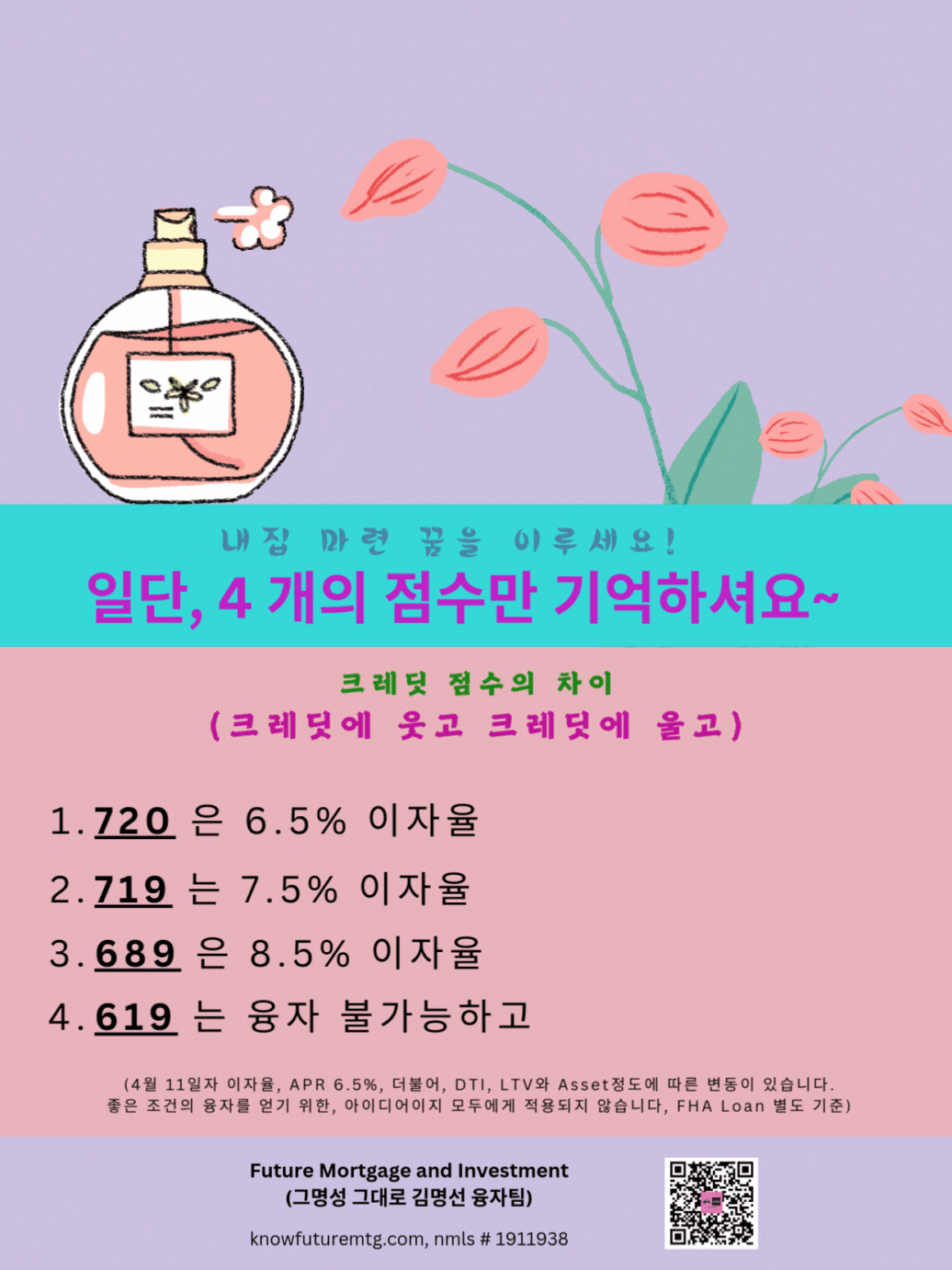 좋은 조건의 융자를 얻기 위한, 아이디어이지 모두에게 적용되지 않습니다. FHA Loan 별도 기준)