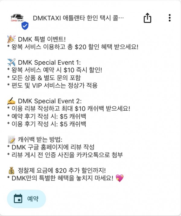 ✅ 왕복 서비스 총 $20 할인 혜택 ✅ DMKTAXI.com