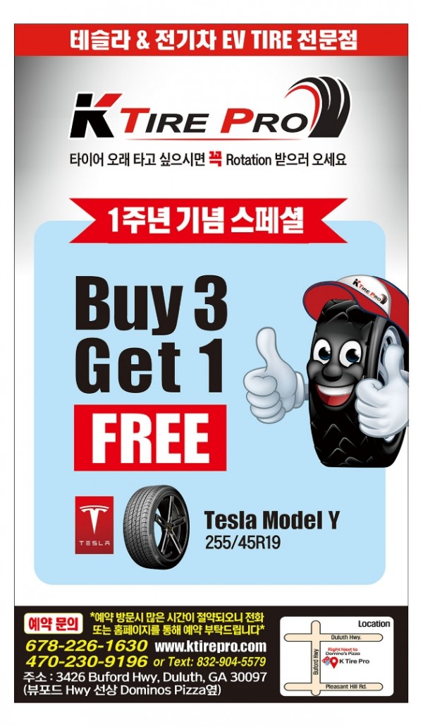 ✅ 1주년 기념 스페셜 - 255/45R19(Tesla Model Y 오리지날 Tire, 전기차 전용, 타이어 싸이즈를 꼭 확인하세요) Buy 3 Get 1 Free Promotion