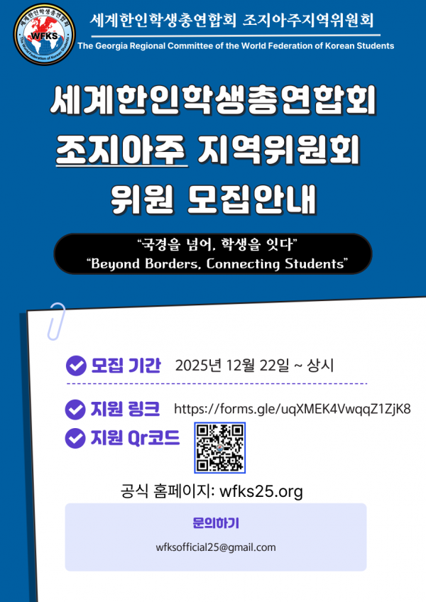 세계한인학생총연합회 조지아주 지역위원회 위원을 모집합니다.