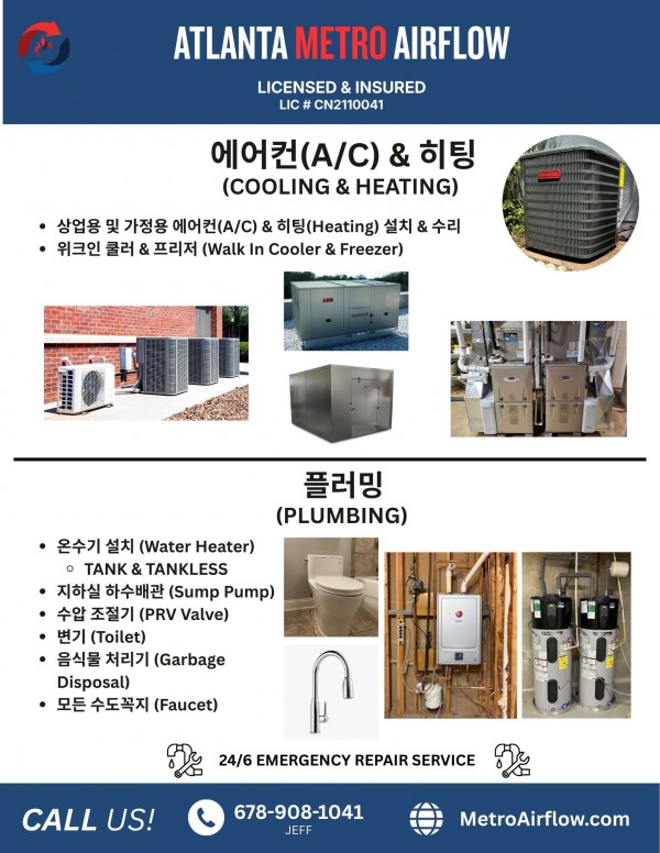 에어컨(A/C), 히팅(Heating), 전기, *플러밍(Plumbing), 온수기, 수도 설치 및 수리 > 광고