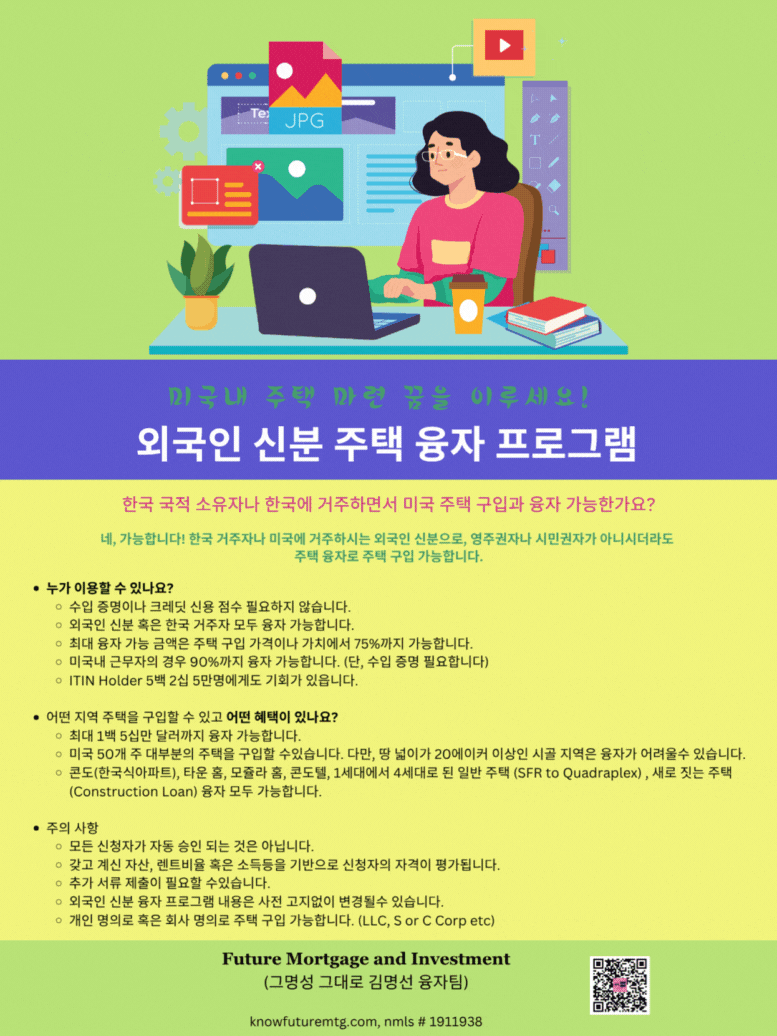 ✅✅✅ 한국 국적 소유자나 한국에 거주하면서 미국 주택 구입 융자 가능한가요?✅✅✅