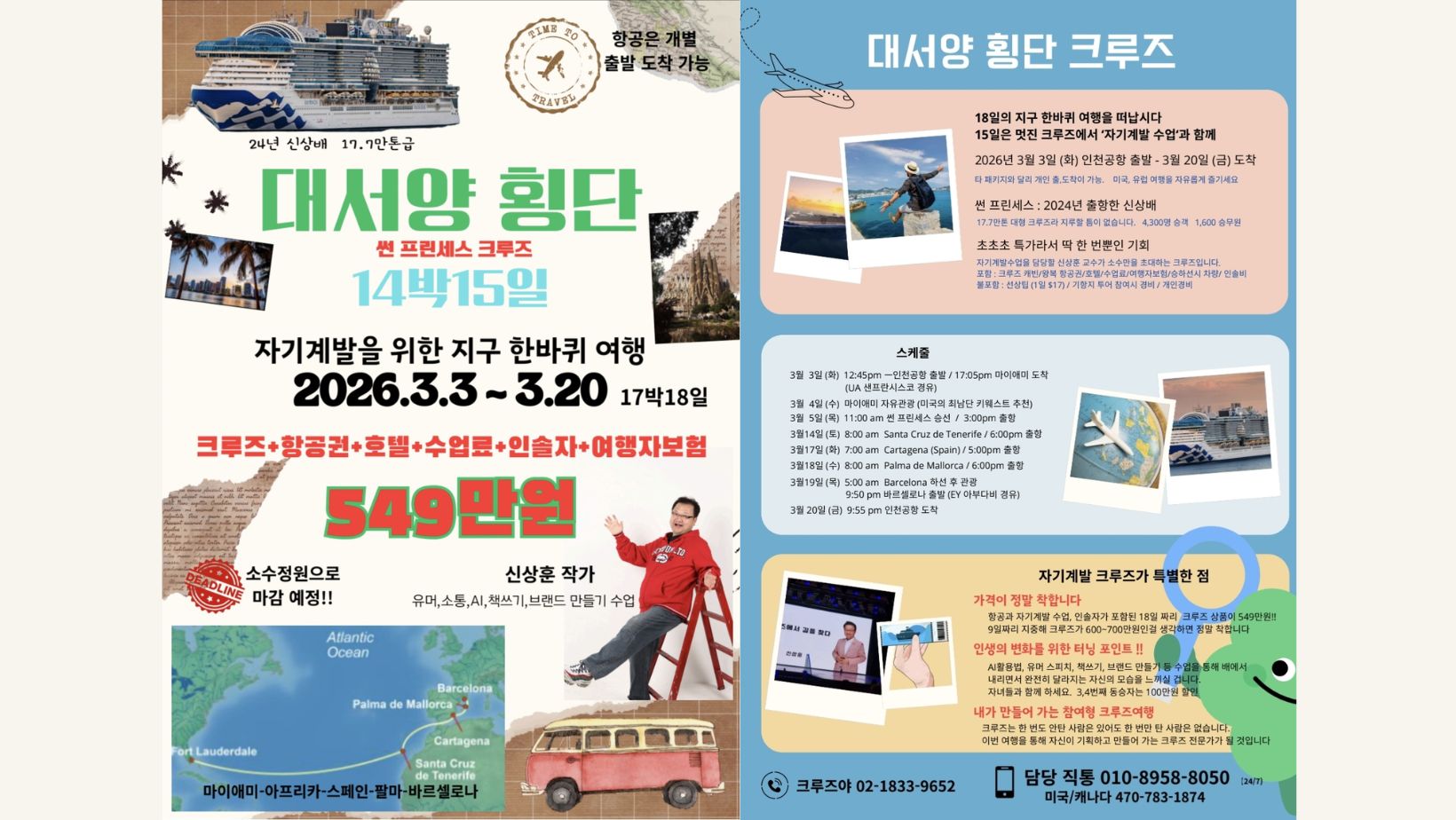 • 특징: 한국 유명 작가 신상훈 동행, 유머·책쓰기·브랜드 만들기 등 선상 강의 진행
