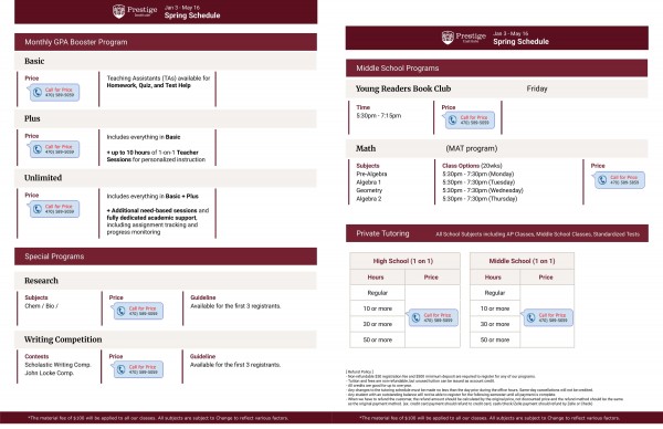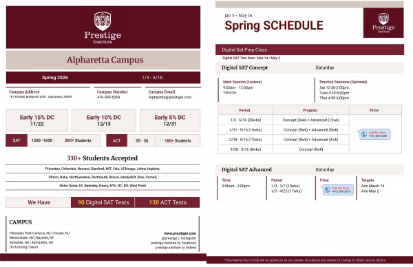 [Prestige in Alpharetta] Spring 2026 조기등록 할인 이벤트! > 광고