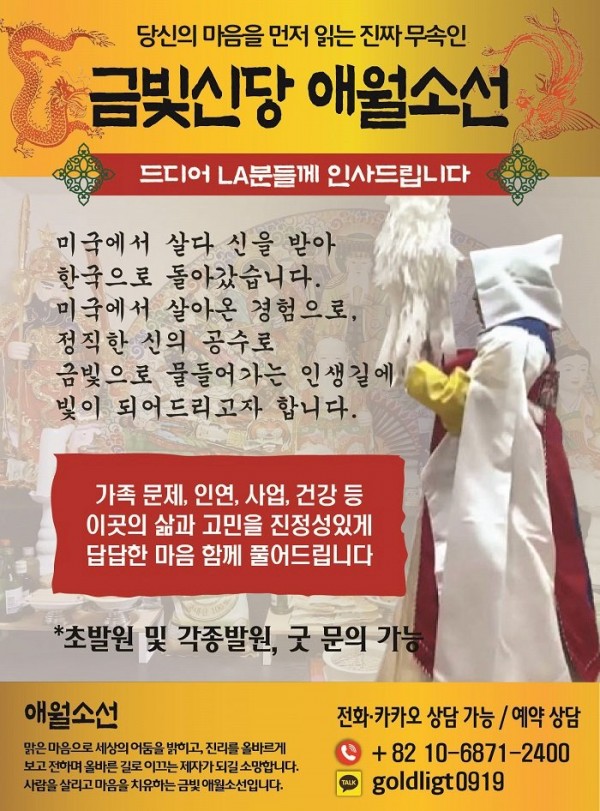 당신의 마음을 먼저 읽는 진짜 무속인 " 금빛신당 애월소선 "