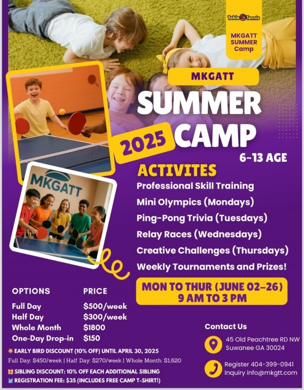 MK Georgia Table Tennis Suwanee/ MK 탁구 아카데미에서 캠프 모집합니다.