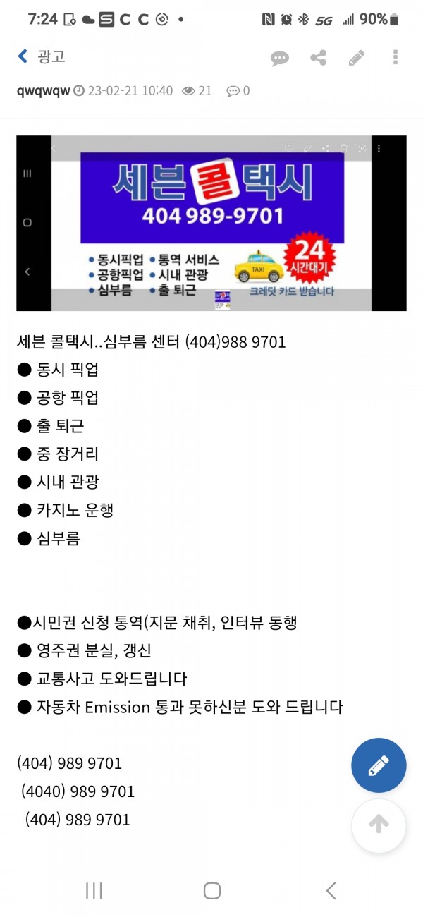 ●●● 세븐 콜택시 404 989 9701 ●●●