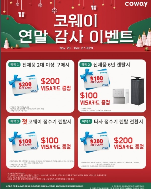 코웨이정수기❤️렌탈!!12월프로모션(11/28~12/27)