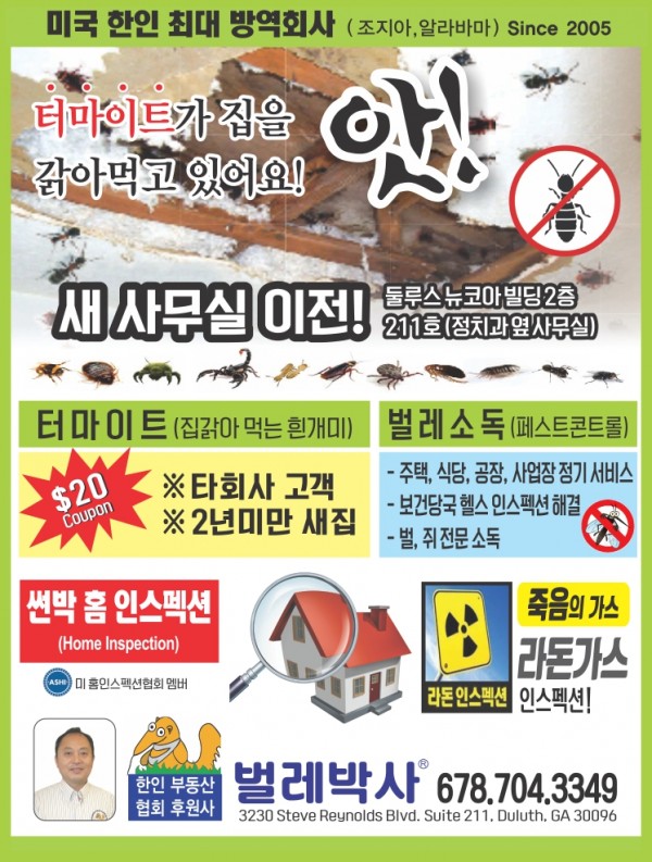 Since 2005, 벌레박사®: (678-704-3349) 바퀴벌레 / 집 / 식당 / 개미 / 거미 / 쥐 / 터마이트