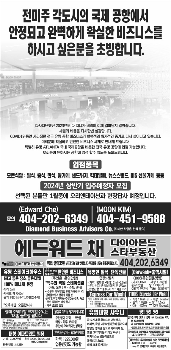 애틀랜타 국내/국제선 공항=안정되고 확실한 비즈니스!!!