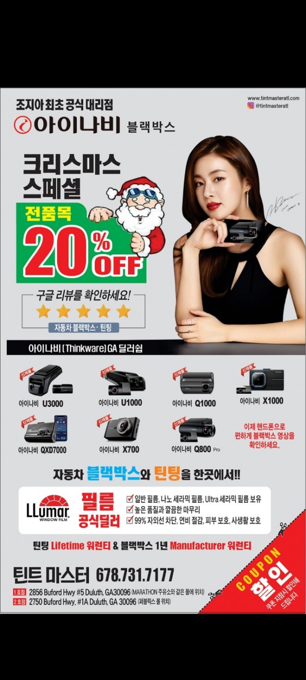 저희 틴트 마스터는 둘루스 지역의 유일한 루마 필름 공식 딜러로서 자동차, 주택 및 상업용 건물 등 모든 유리에 서비스를 제공하고 있습니다. 또한 동남부 최초 아이나비 공식 딜러로서 최고의 서비스로 보답하고 있습니다.