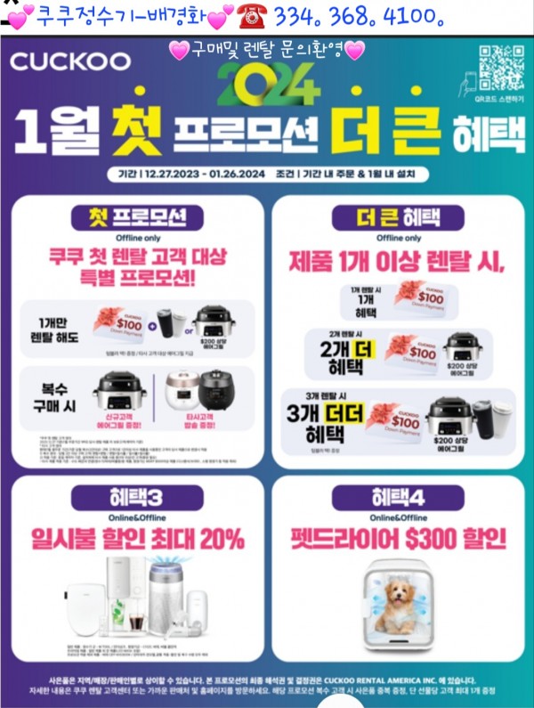 ♦️쿠쿠정수기♦️2024년 쿠쿠 첫프로모션!! 한개만해도!!와우!!