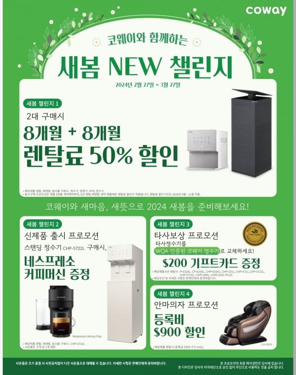코웨이정수기❤️렌탈!!3월프로모션(2/27~3/27)