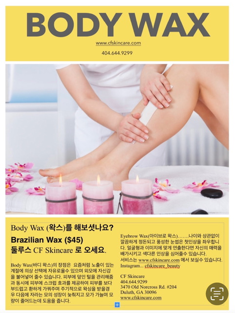 Body Waxing (Brazilian wax $45, Eye brow $15)해 드립니다.