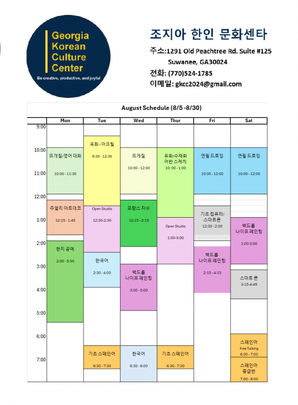 조지아 한인 문화 센터 수강생 모집합니다. 화/목 유화, 아크릴 클래스 1day free trial 가능합니다.