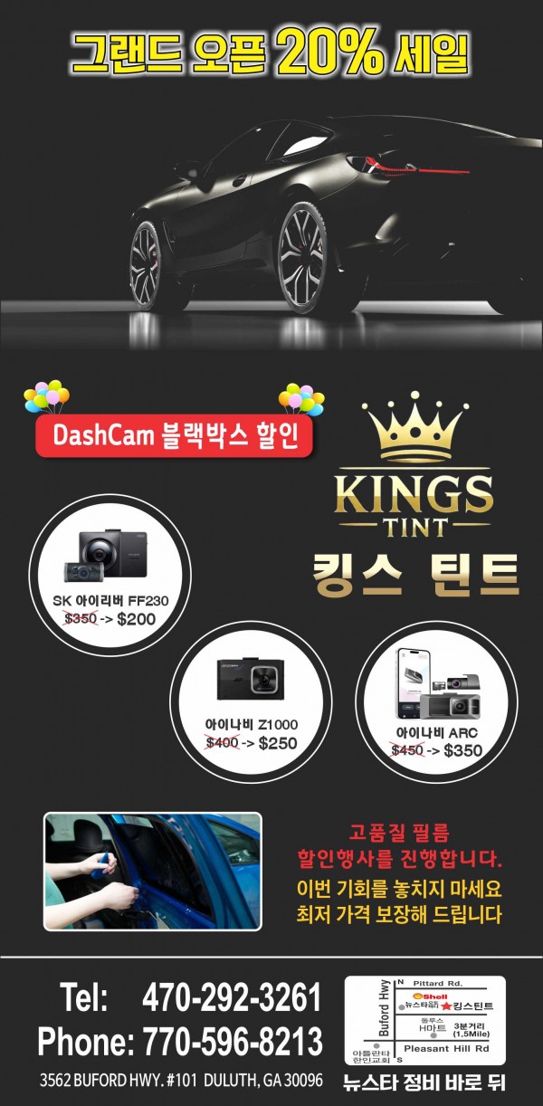 ❤️❤️[킹스틴트] 그랜드 오픈 자동차 썬팅, 블랙박스 전품목 20% 세일 ❤️❤️