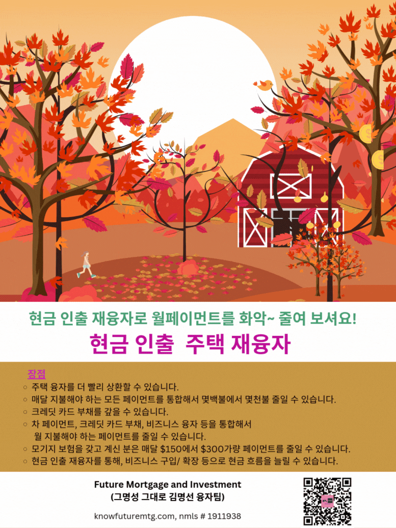 이자율이 많이 내렸읍니다 (재융자~ 기회를 놓치지 마셔요~)