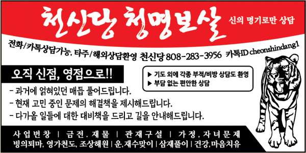 Tel. 808-283-3956 , 카톡ID: cheonshindang1
