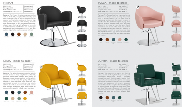저희는 죠지아에 본사를 두고 전미주 지역에 헤어샵,스킨샵에 들어가는 가구(의자,거울 등)를 판매하는 회사입니다. 한국,이태리,중국 제품 다량 보유중이니 저희 쇼룸으로 오셔도 좋고 회사 웹사이트 방문도 좋습니다. 18년 된 탄탄한 회사입니다. 10월, 11월 특별 세일 중입니다.