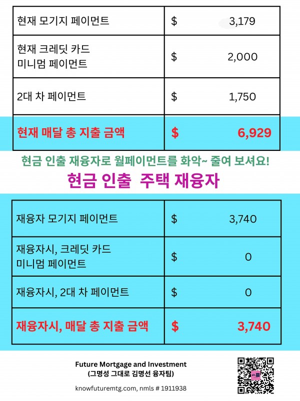 3. 월 모기지 페이먼트는 현재 지불하시는 금액보다 많이 나갈 수 있습니다.