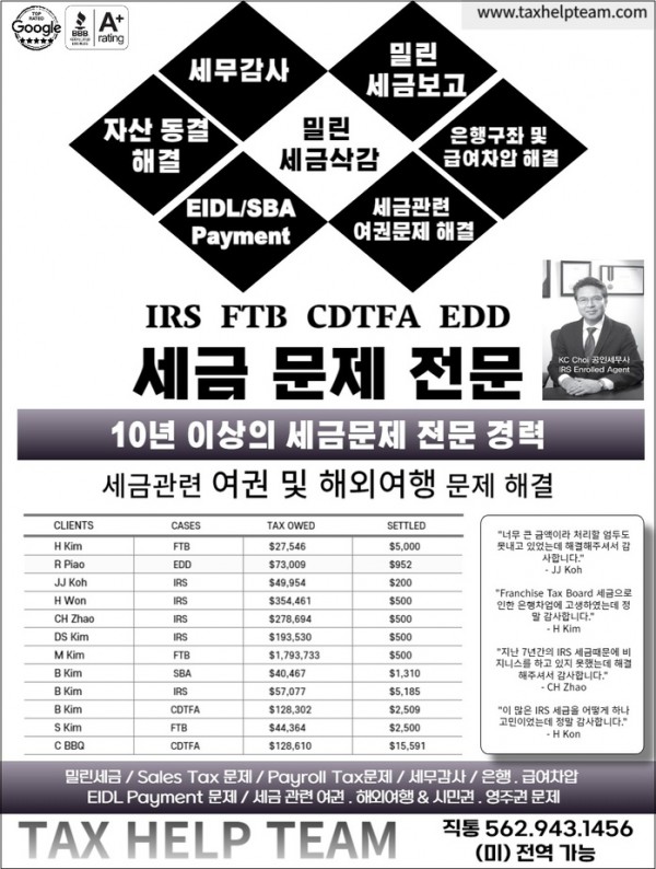 세무 감사 . 은행/급여 차압 . EIDL Payment 문제