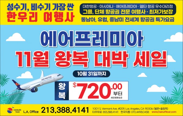 한국행 국적기 특가(213-388-4141)