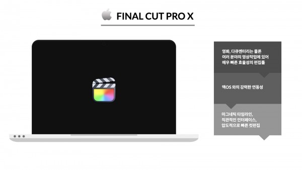 - 하드웨어 (Mac), 코덱(Prores), 소프트웨어(Final Cut) 간 높은 반응성을 보여주는 프로그램