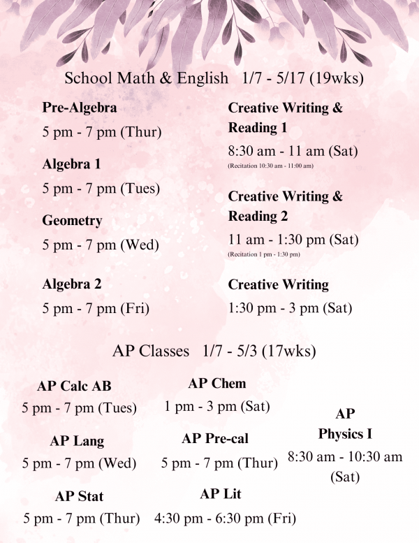 이번 봄학기에는 SAT 대비부터 학교 주요 과목 및 AP 과정까지, 자녀분들이 학업 성취를 높이고 목표를 달성할 수 있도록 돕는 다양한 맞춤형 수업이 준비되어 있습니다.