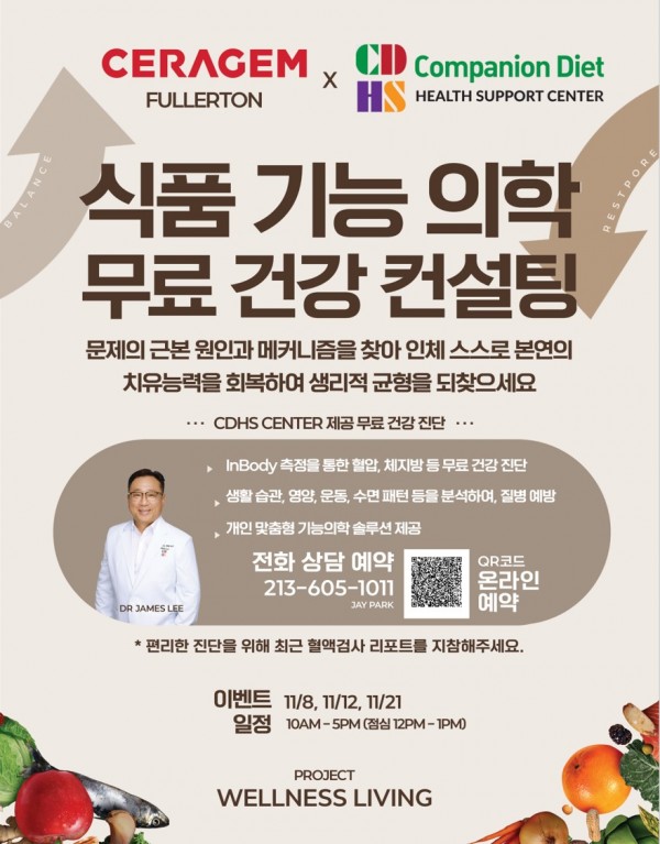 한가지 더 추수감사의 계절을 맞아 CDHS 제임스 리 박사님을 모시고 여러분의 건강을위해