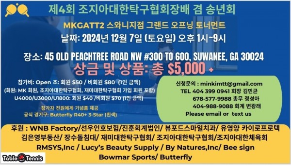 조지아탁구협회 송년회및 Mk table tennis 2호점 Open 기념 행사가 있습니다