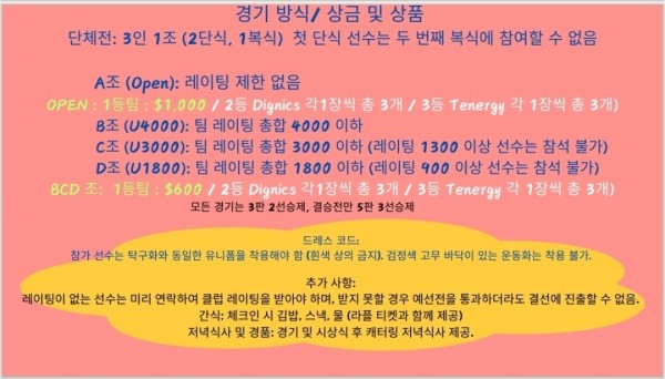 3인이 한팀으로 경기가 레이팅별 4개조로 나누어 치루어지게 됩니다.