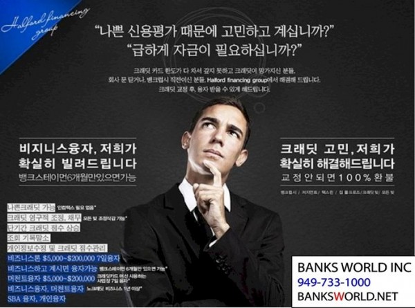 개인, 상업융자 / SBA 20만~50만 / 주택융자 / 재융자