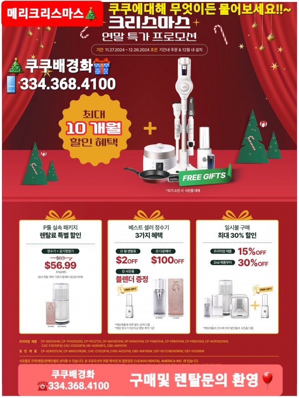 [쿠쿠정수기♦️배경화]쿠쿠12월 크리스마스 연말특가 시작!! 베스트셀러정수기!! 등록비100불할인!! 렌탈료2불off +선물까…