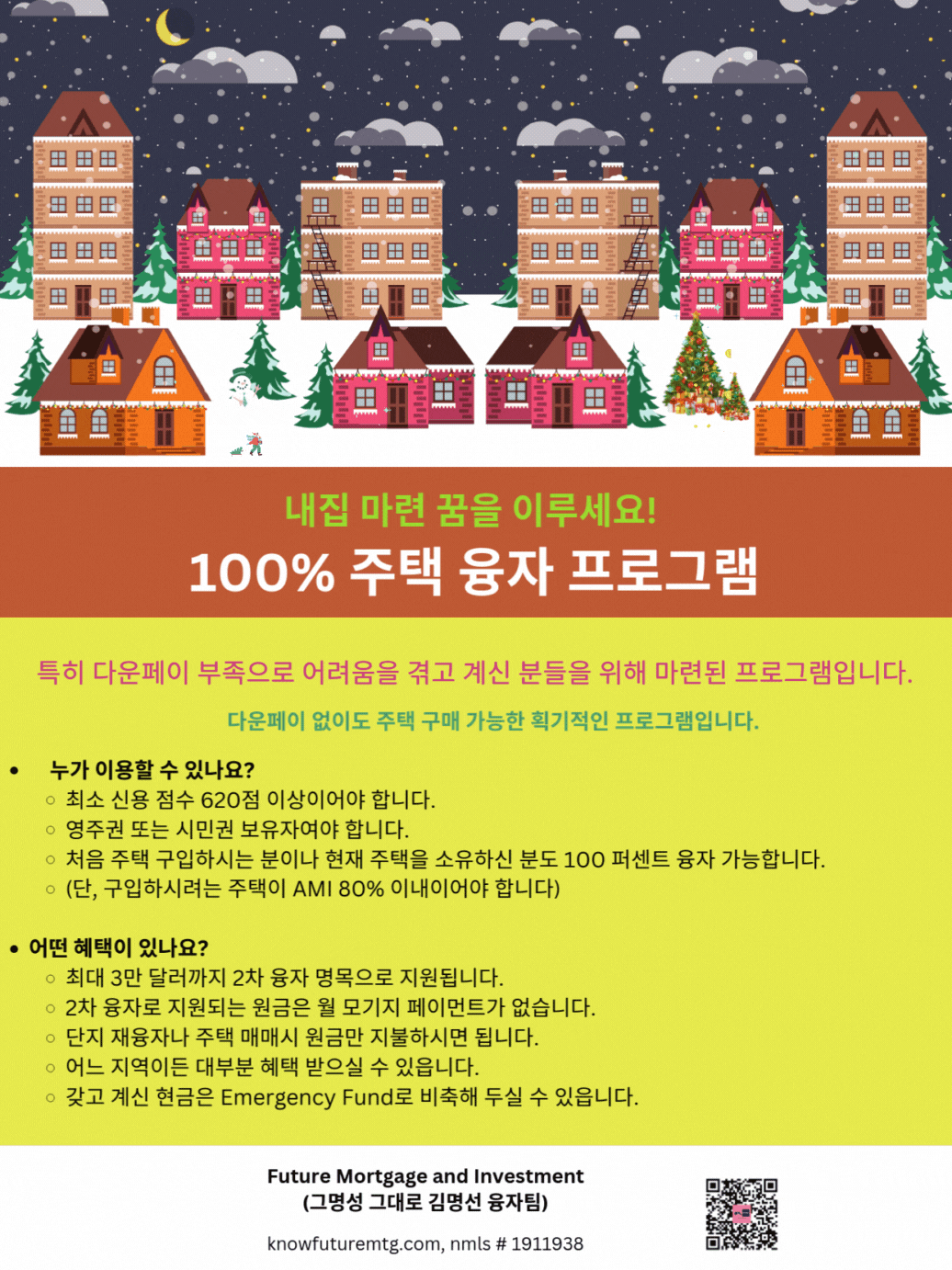 주택 구입의 꿈꾸는 모든 분들, 특히 다운페이 부족으로 어려움을 겪고 계신 분들을 위해 마련된 프로그램입니다.