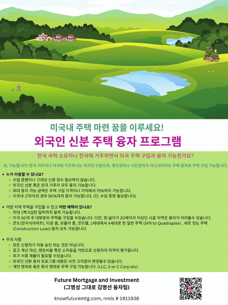 한국 국적 소유자나 한국에 거주하면서 미국 주택 구입 융자 가능한가요?