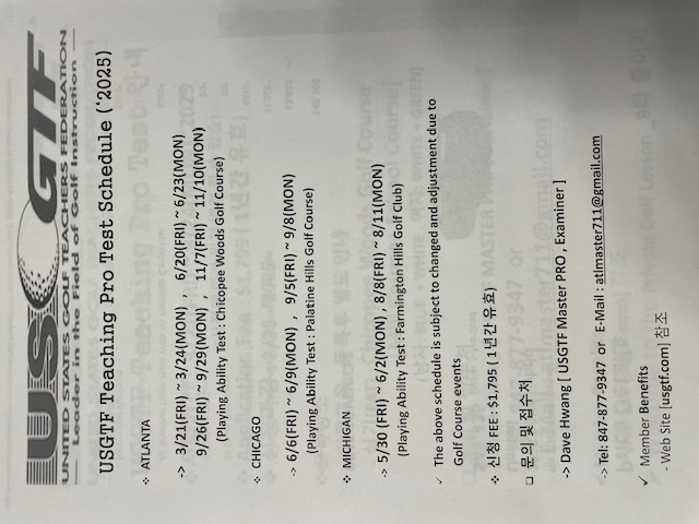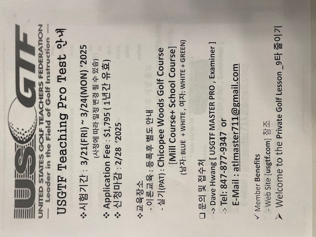 [GOLF] USGTF TEACHING PRO TEST 일정 안내 [ 3/21 (금) ~3/24(토) ]