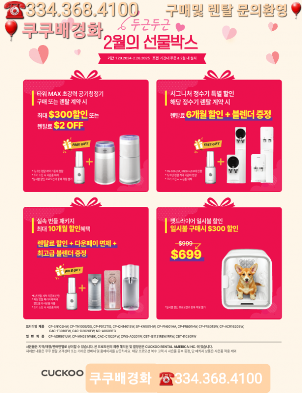 [쿠쿠정수기♦️배경화] 두근두근!!2월의 선물박스.. 1/30-2/26일까지! 등록비할인+렌탈료6개월할인+선물까지!!