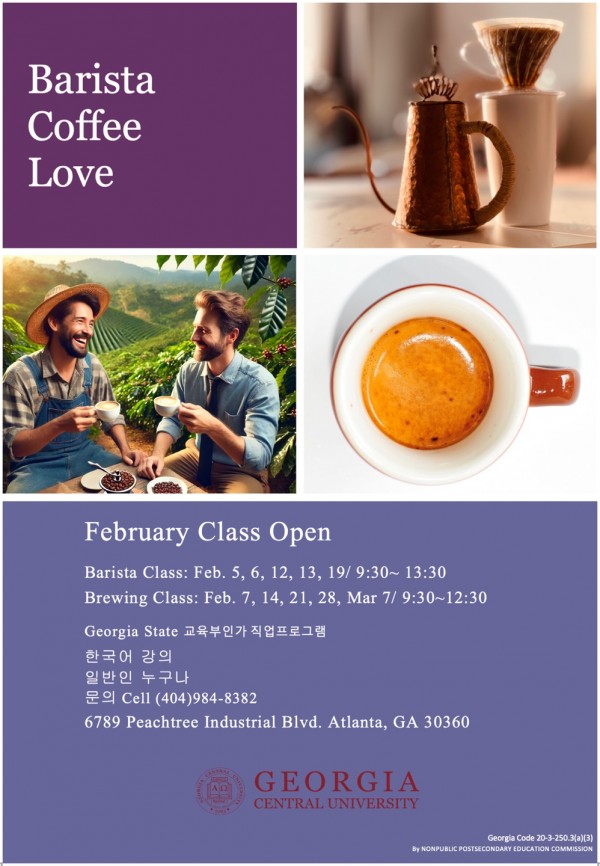 2월 과정은 바리스타 수요일 목요일 9:30분에서 시작되고