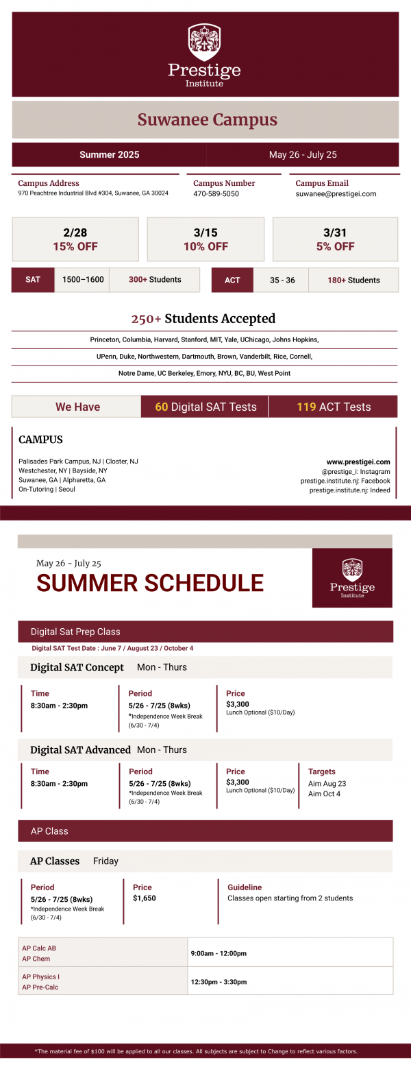 [Prestige Institute] 2025 여름 학기 등록 시작!