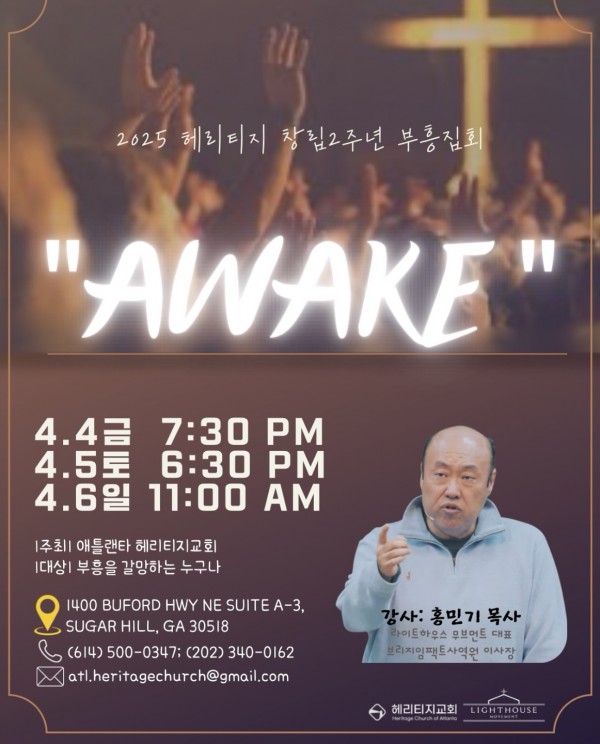 라이트하우스 헤리티지교회(애틀랜타)가 창립 2주년 기념 1차 부흥집회에 초청합니다!