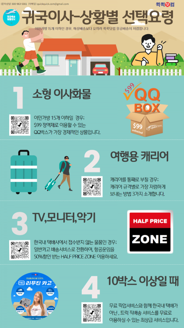 1) 이민가방 15개 이하일 경우= QQ박스(소형 이사화물 최저가 상품)