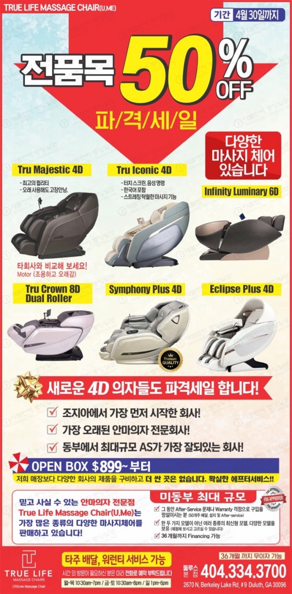 조지아주 덜루스에서 15년간 운영해온 저희는 뛰어난 고객 서비스를 제공하는 데 자부심을 가지고 있습니다. 지금은 사랑하는 사람에게 건강을 증진하고, 몸을 재충전하며, 편안하게 쉴 수 있는 특별한 선물을 할 수 있는 완벽한 순간입니다.