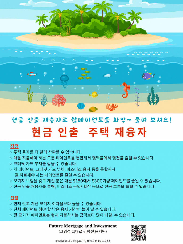 현금 인출 재융자로 월페이먼트를 화악 ~ 줄여 보셔요! ![]()