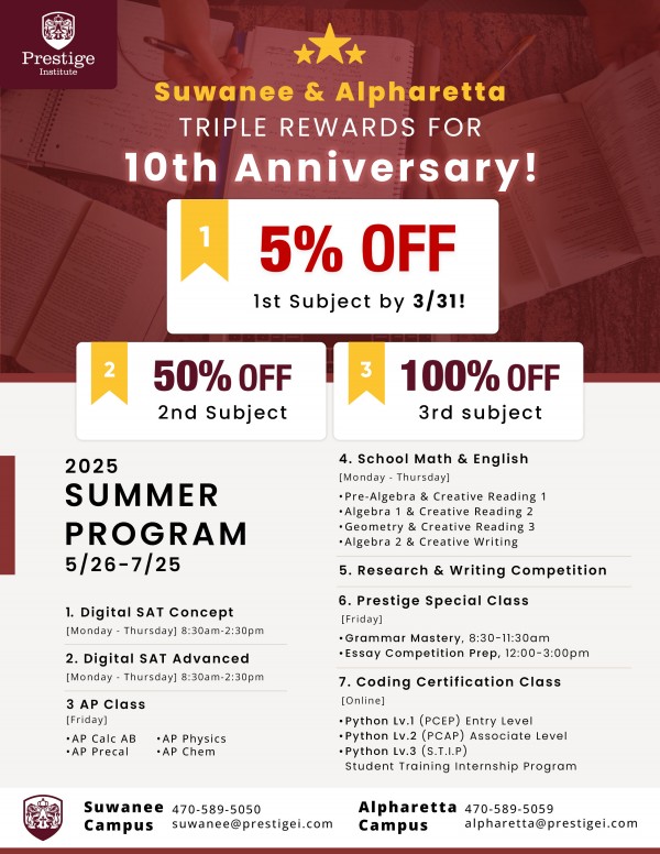 Suwanee 캠퍼스 470-589-5050 | suwanee@prestigei.com