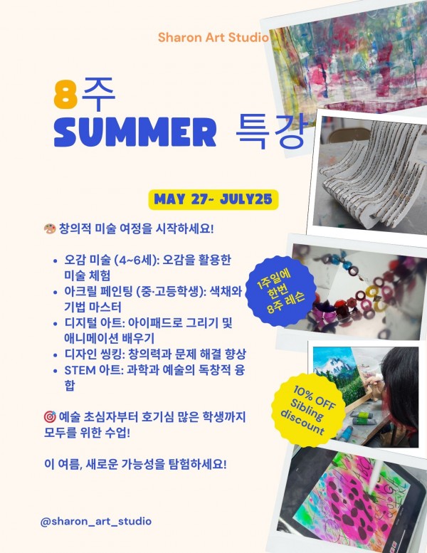 샤론아트에서 여름방학을 맞이하여 여러분의 창의적인 여정을 시작할 특별한 기회를 선사합니다!