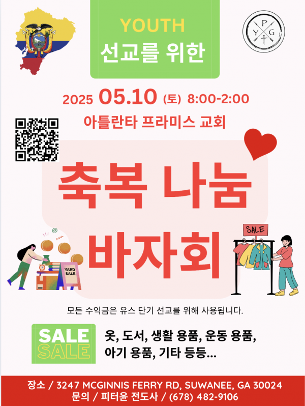 모든수익금은 11월 에콰도르로 떠나는 청소년 선교 활동을 위해 사용됩니다!