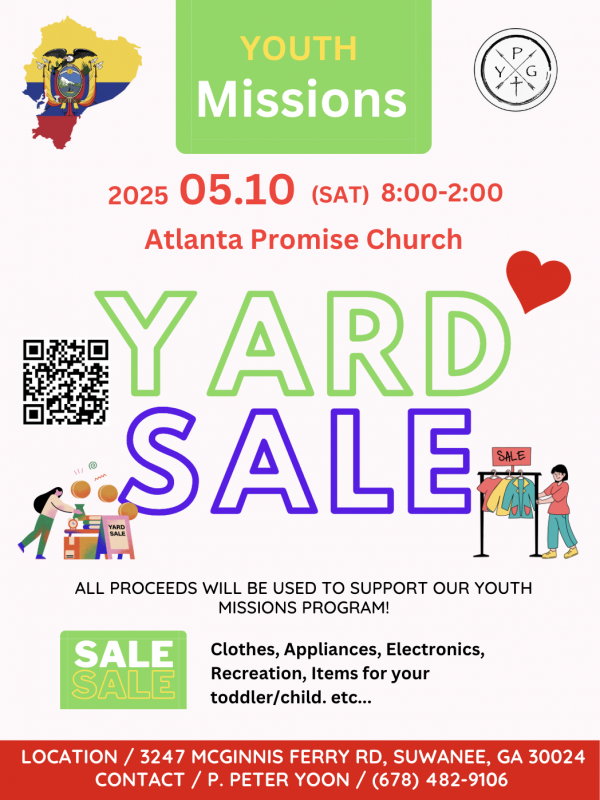 프라미스 교회에서 매년 열리는 야드세일의 시작을 여러분께 알리게 되어 매우 기쁩니다!