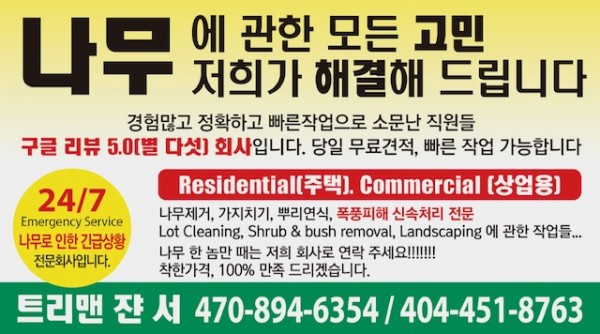 저희회사는 Licensed(라이센스), Fully Insured(보험) 된 나무제거 및 Landscaping에 관한 일을 하는 전문회사입니다.