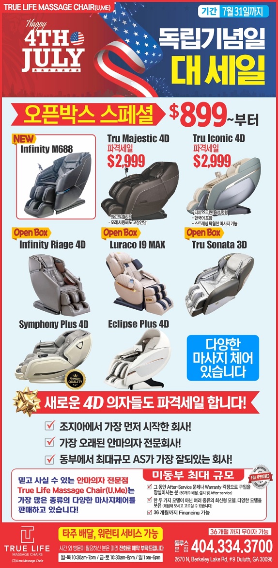 마사지체어 독립기념일 세일!!! 페이지 정보 작성자 테돌이 작성일 25-07-01 14:42 조회 287 댓글 0 본문 오픈박스 스페셜 $899~ 7월 31일까지~ 미동부 최대규모, 타주배달, 워런티 서비스 전화 404-334-3700 이전글 소형짐소형이사타주이사해드림니다 다음글 ***** 각종 통역 도와드립니다!!! ***** 댓글목록 0 등록된 댓글이 없습니다.